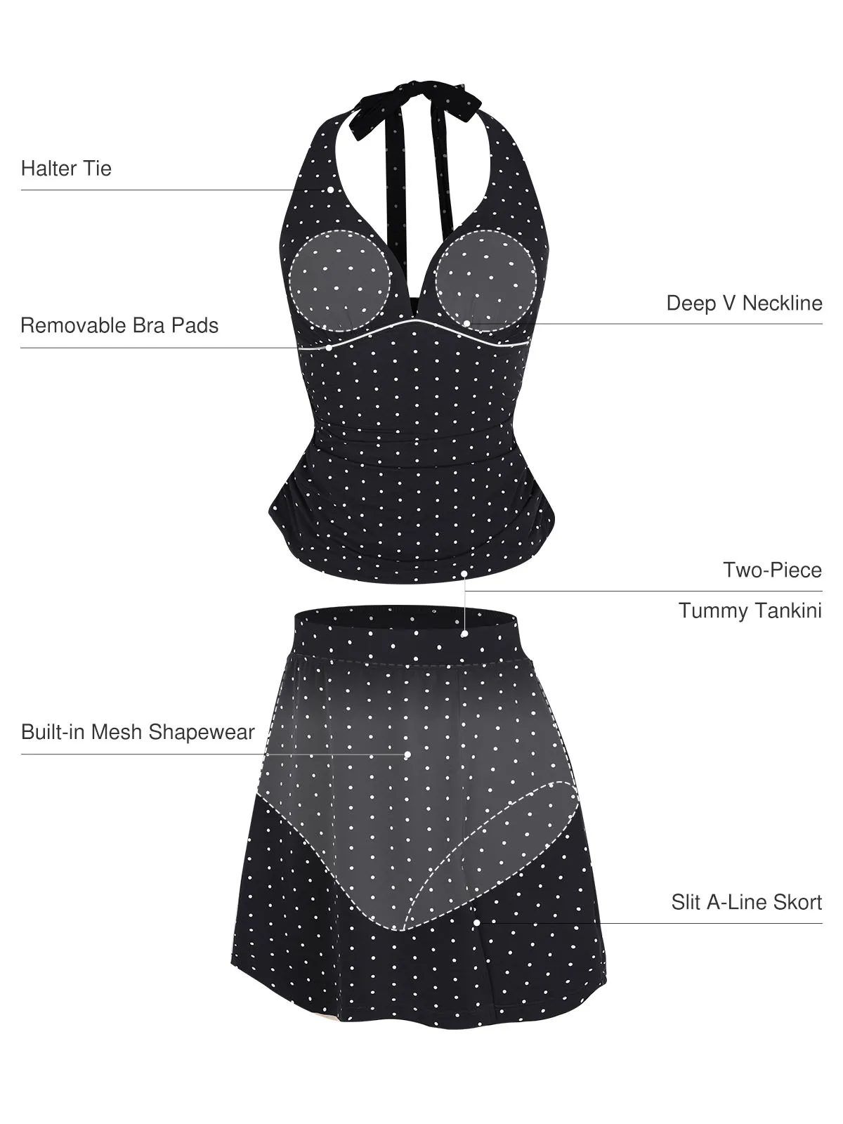 Sculpting Halter Tankini Skirt Swimsuit Set